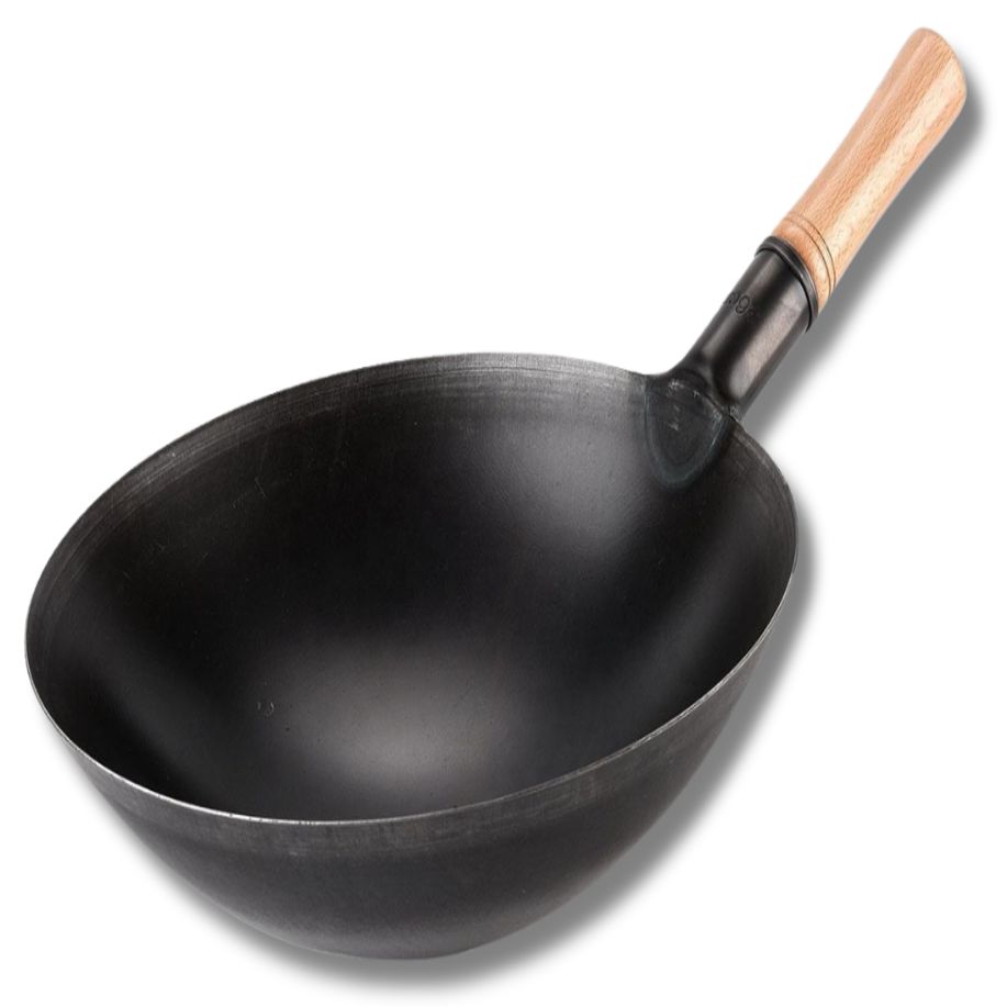 Chinese Wok with wooden Handle with Black Coating